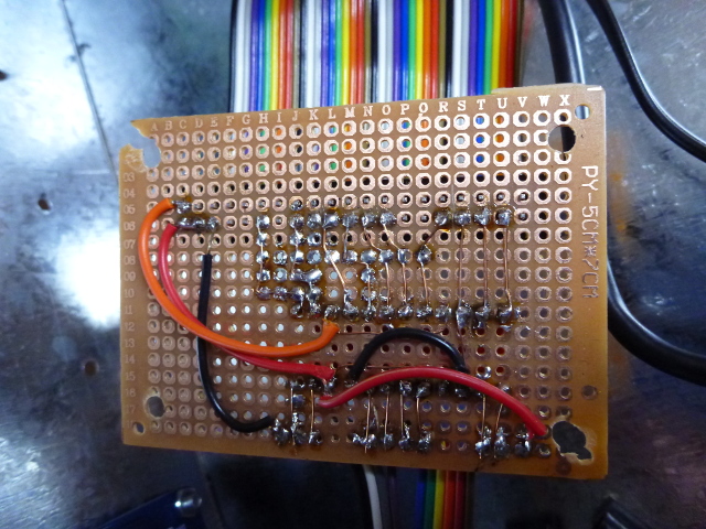 I used a couple of jumpers for the longer runs, but mostly I used a single stand of copper wire stripped from the same cable running to the solenoids. You might be able to avoid jumper cables if you had double sided board.